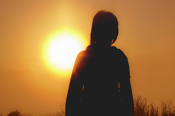 Sun worshipping through the misty fog, with sunlight backlighting silhouette, surrounded in color.